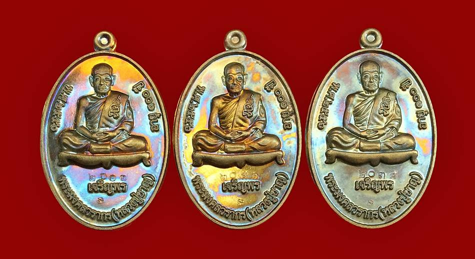 เหรียญมงคลเจริญปริสุทโธ มหาเมตตา๘๘ ที่รฤกเจริญอายุวัฒนมงคล ๘๘ ปี หลวงพ่อนวล วัดไสหร้า เนื้อทองแดงผิวไฟ 3เหรียญ (1) |