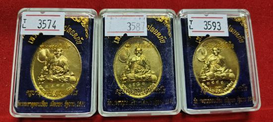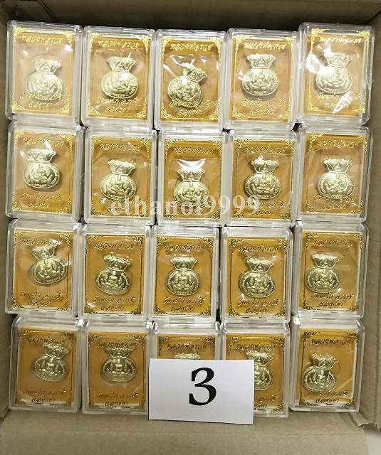 แบ่งปันเหรียญชนะจนปลอดภัย รุ่นรวยทันใจ ครูบาบุญชุ่ม ญาณสวโร วัดพระธาตุดอนเรือง เมืองพง รัฐฉาน ปี2561 เนื้อทองทิพย์กล่องเดิมๆ ชุด3องค์ |
