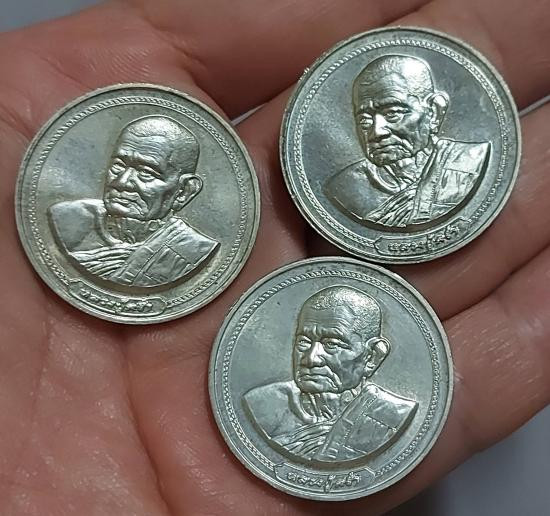 เหรียญถิรธมฺโมภิขุ หลวงปู่ป่วน ถิรธัมโม วัดช้างน้อย จ.พระนครศรียุธยา เนื้อเงินสภาพสวยเดิม พร้อมกล่องเดิม หมายเลข 7 พ.ศ.2559 |