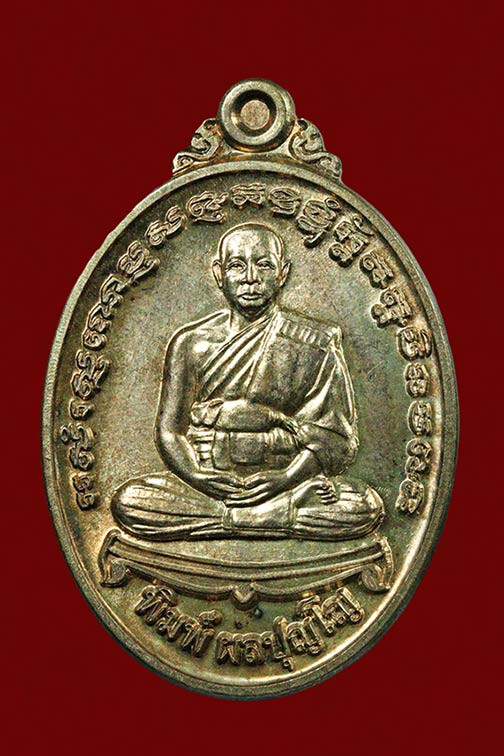 หลวงปู่ม่น วัดเนินตามาก จ.ชลบุรี รุ่นเจริญพร ( ครบ ๗ รอบ ) เนื้อเงิน |
