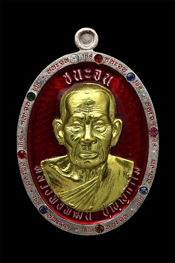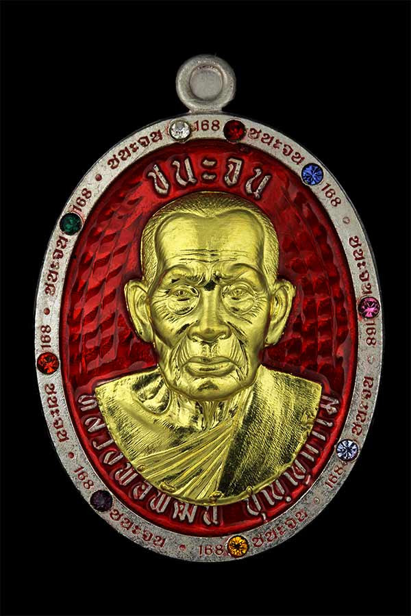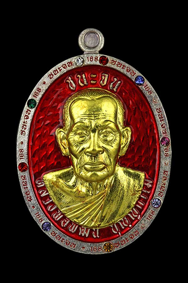 เหรียญรุ่น ชนะจน พระหลักสายหลวงพ่อพัฒน์ วัดห้วยด้วน จ.นครสวรรค์ เนื้อเงินลงยาแดง หน้ากากทองคำ เลข 4 น้ำหนัก 17.25 รับประกันพระแท้มีกล่องเดิม |