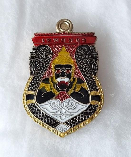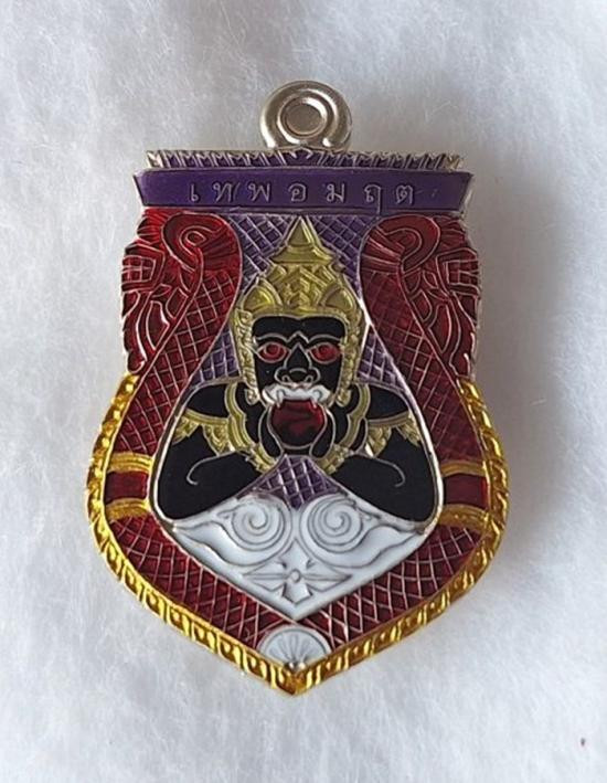 เหรียญพระราหูอมจันทร์ หลวงปู่ศิลา เมตตาอธิษฐานจิต รุ่นเหนือดวง เนื้ออัลปาก้าลงยา เลข2หลัก No.57 |