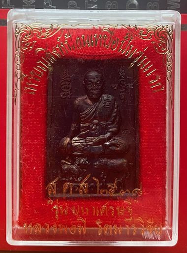 เคาะเดียว...เหรียญสี่เหลี่ยมทองแดงรดำ สิงห์ป้อนเหยื่อปั๊มรุ่นแรก หลวงพ่อมี วัดมารวิชัย จ.อยุธยา ส.ค.ส. ปี 38 รุ่น มหาเศรษฐี สวยมาก กล่องวัด (6) |