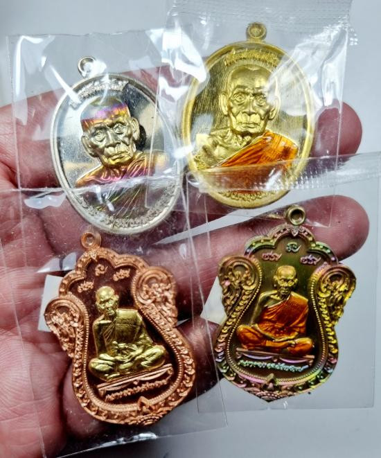 เลื่อนสมณศักดิ์ หลวงพ่อพัฒน์ คละเนื้อ 4เหรียญ พร้อมกล่อง |