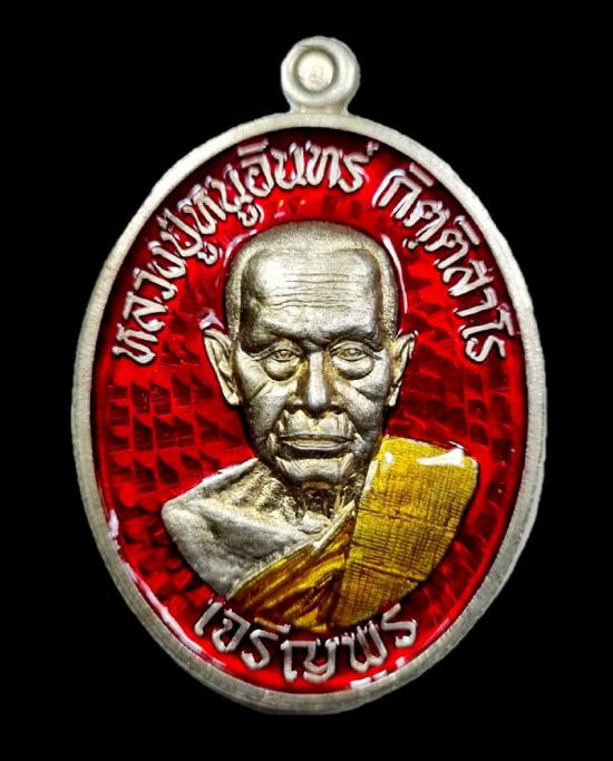 เจริญพรล่าง หลวงปู่หนูอินทร์ วัดป่าพุทธมงคล เนื้ออัลปาก้าลงยา ไม่แกะซีล 2เหรียญ (A) |