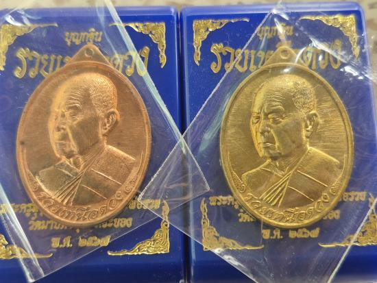 เหรียญเสมา หลวงพ่อรวย วัดตะโก อยุธยา ปี57 รุ่นรวยเจริญสุข เนื้อทองฝาบาตร |