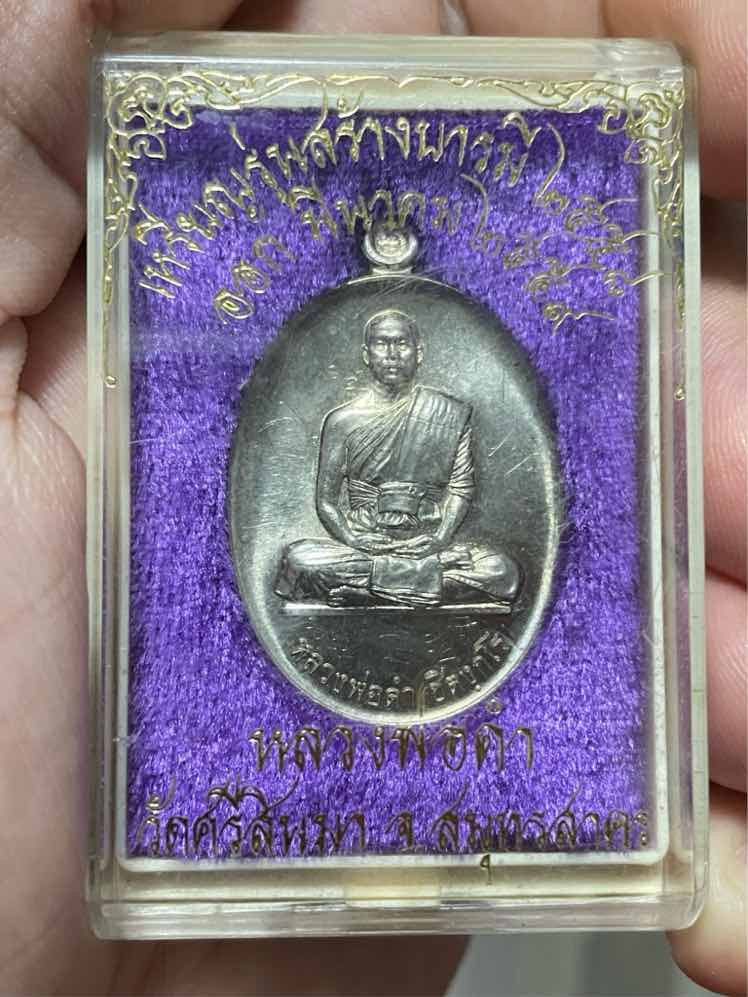 350.- ems เหรียญสร้างบารมี (รุ่น3) ปี58 เนื้ออัลปาก้า #มีจารมือ หลวงพ่อดำ วัดศรีสินมา บ้านแพ้ว สมุทรสาคร สวยเดิมๆ มีกล่องเดิม no.3216 |