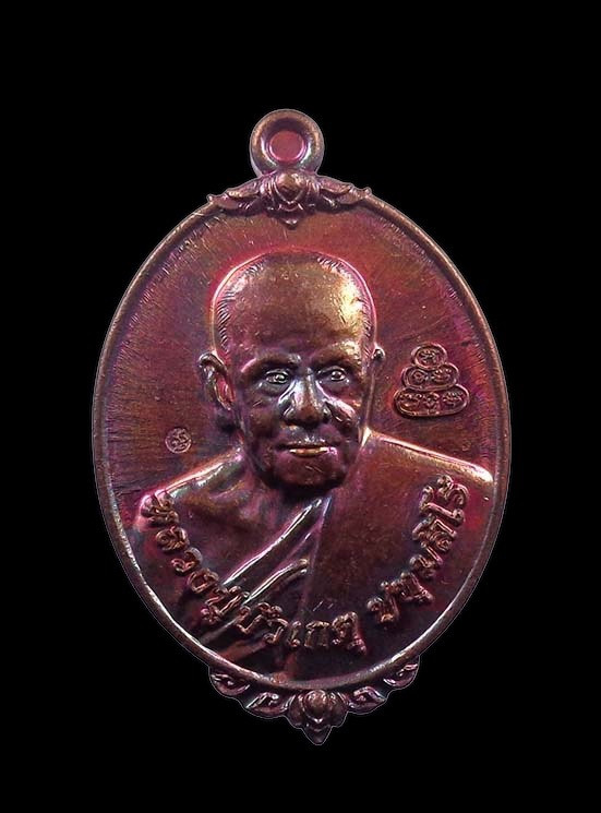 เหรียญหลวงพ่อรวย วัดตะโก รุ่นชนะจน(เล็ก) ปี2556 เนื้อทองแดงผิวไฟ บล็อคตัวหนังสือ |