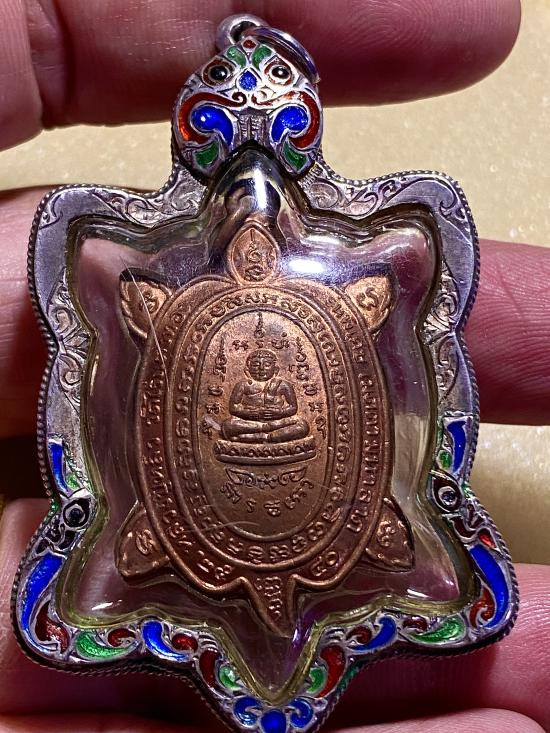 ** เคาะเดียว**เหรียญห่วงเชื่อมหลังเต่า รุ่นอมตะพัฒน์ปาฏิหาริย์ เนื้อทองแดงรมดำลงยาแดง หน้าเปียกเงิน หลวงพ่อพัฒน์ วัดห้วยด้วน ปี 2564 |