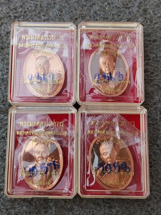 เหรียญนั่งพานรุ่นแรก ลป.แสง วัดโพธิ์ชัย นครพนม รุ่นแสงพันล้าน ชุดของขวัญ 4 เหรียญ(ตามภาพ) ราคาจองชุดละ 500 บาท วันนี้วัดใจเคาะแรกแดงครับ/ชุดที่5 |