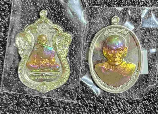 เคาะเดียวแดง เหรียญหลวงพ่อพัฒน์ รุ่นเลื่อนสมณศักดิ์ เนื้ออันปาก้าหน้ากากทองทิพย์ผิวรุ้ง รวม 2 เหรียญ |