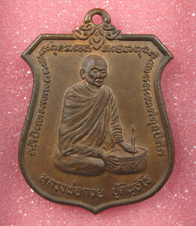 รุ่นแรกหลวงพ่อคำนวนวัดแก้วเจริญเนื้อทองแดงมีจาร |