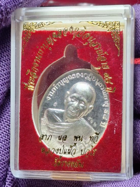 เหรียญ รุ่นรวยไม่เลิก หลวงปู่ผ่าน วัดป่าโพธิ์แก้ว 2 จ.ปราจีน บุรี เนื้อเงิน ตอกโค๊ต หมายเลข สภาพสวยกล่องเดิมๆ !! |