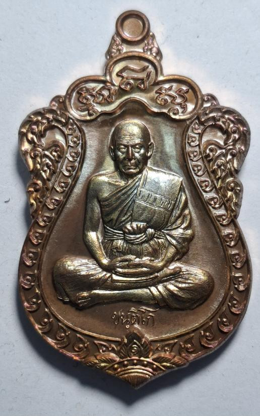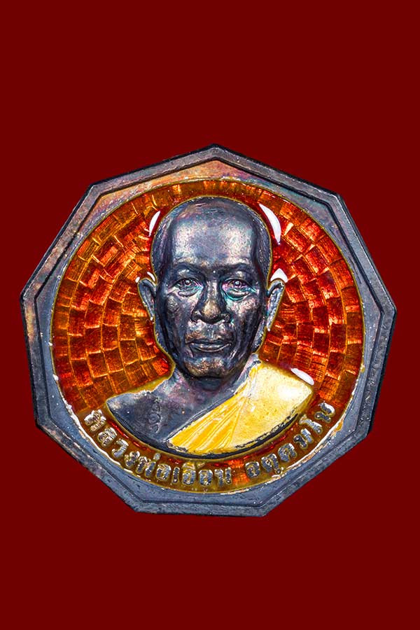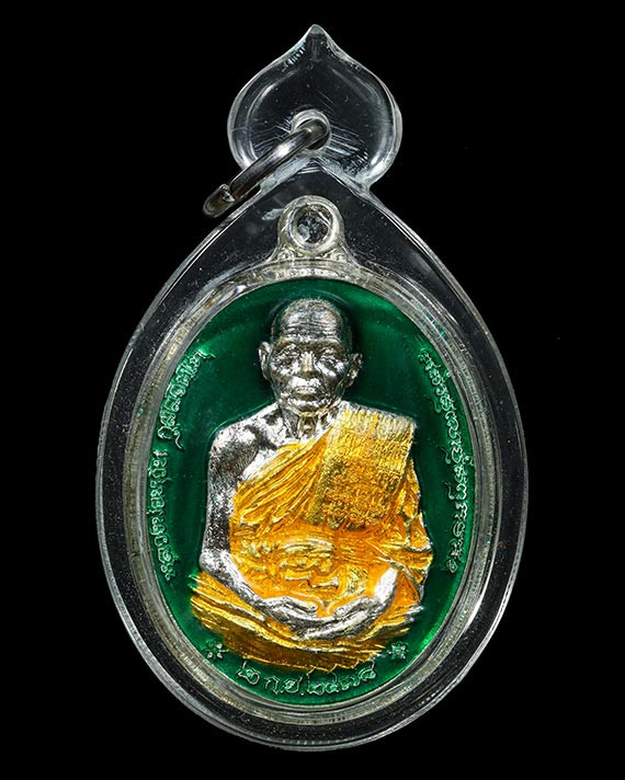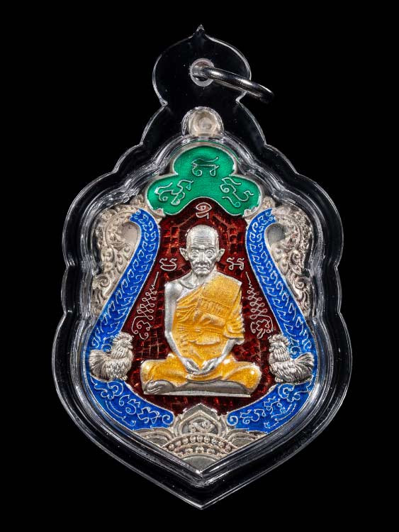เหรียญหลวงพ่อรวย วัดตะโก รุ่นไตรมาส 59 รวยรวยรวย เนื้อทองแดงลงยา ปี 2559 จ.พระนครศรีอยุธยา เลี่ยมทองคำแท้ |