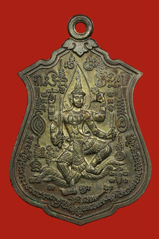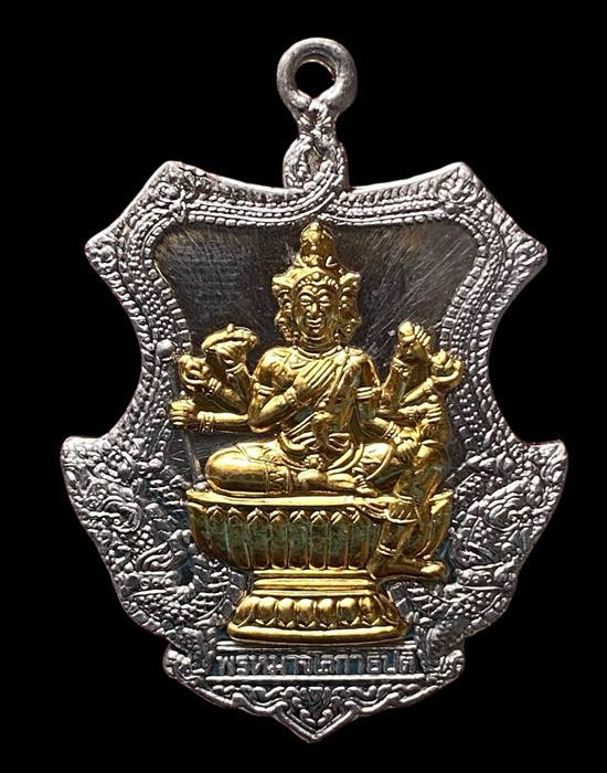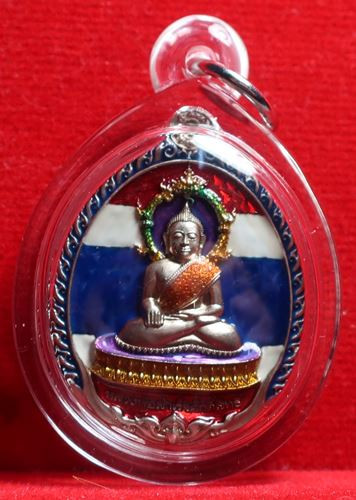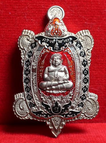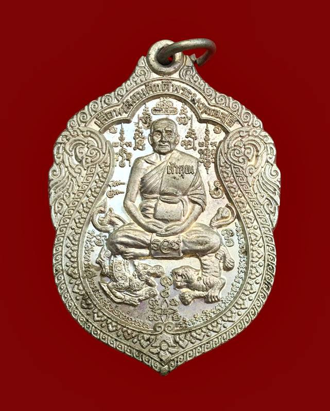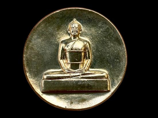 เคาะเดียวแดง เหรียญหลวงพ่อพัฒน์ รุ่นไตรมาส 63 พิมพ์นั่งพาน เนื้อชุบเงินโบราณ |