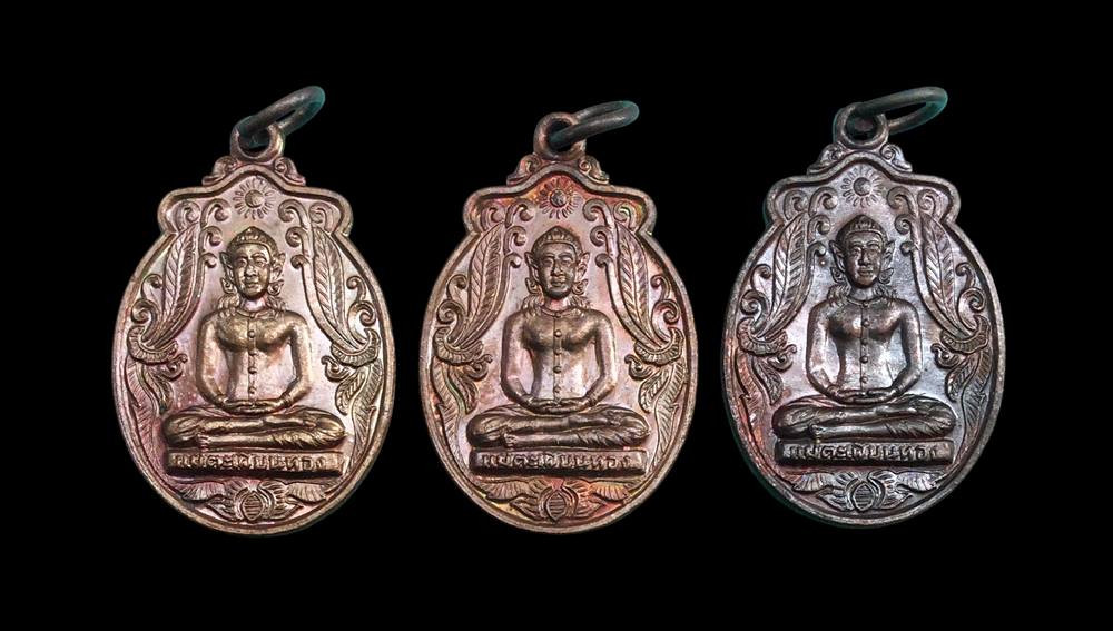 200 แดง พระ 3 เหรียญ พระแก้วมรกต รุ่นบูรณะฉัตร มวลสารยอดฉัตร ณ วัดพระแก้ว หลวงปู่ดู่ วัดสะแก ร่วมอธิษฐานจิตปลุกเสก ปี 2531 และพระ 2 เหรียญ พระแก้วมรกต มูลนิธิสังฆศาสน์ ปี 2531 |
