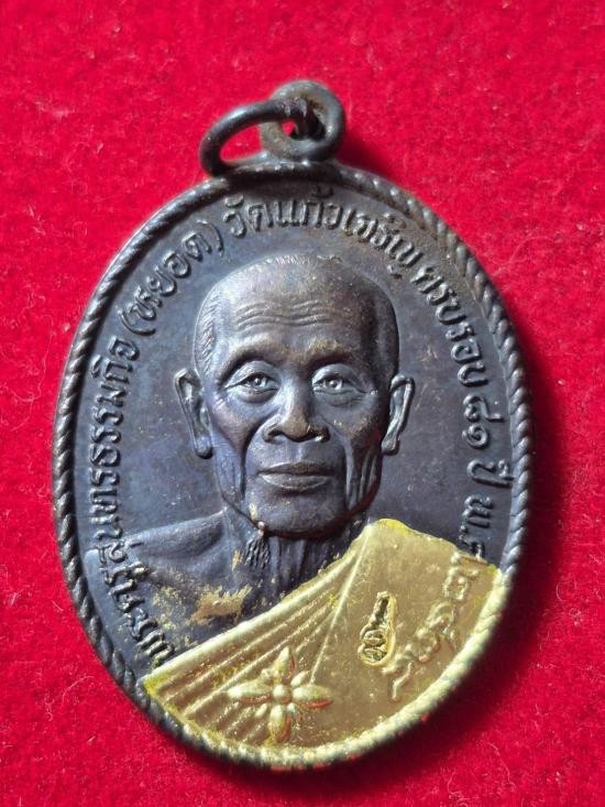 เคาะเดียวแดง..เหรียญรูปเหมือนเนื้อตะกั่วหลังเรียบ...หลวงพ่อชำนาญ..ออกวัดบางกุฎีทอง..ปี2544..จ.ปทุมธานี |