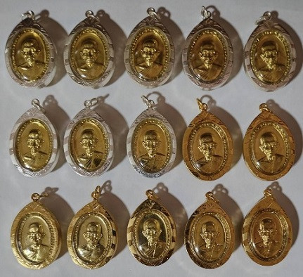 วัดใจ ยกชุด 15 องค์ เหรียญหลวงพ่อรวย รุ่น รวย รวย เฮง เฮง ปี 2560 เลี่ยมกรอบทองไมครอนและกรอบเงินไมครอน แท้ ทัน หลวงพ่อรวย |
