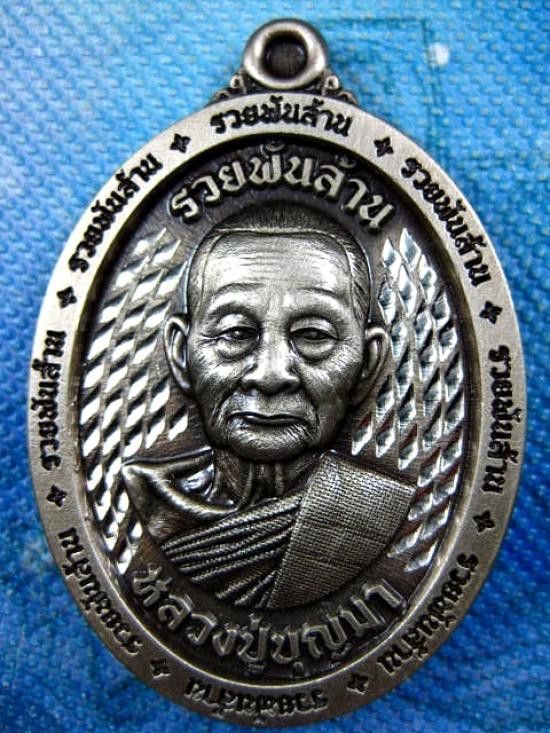 เหรียญรุ่นรวยพันล้าน เนื้ออัลปาก้าซาติน ขุ้ยพื้นลงยาใส หลวงปู่บุญมา โชติธมโม สำนักสงฆ์เขาแก้วทอง (---A58---) |