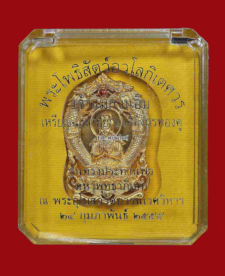 *ที่ฆ้อนมีอีกเยอะครับ เคาะเดียว* เหรียญฉลุลายยกองค์ พระโพธิสัตว์อวโลกิเตศวร เจ้าแม่กวนอิม มังกรคู่ รุ่น "ทรงประทานพร" เนื้อบรอนซ์นอกชุบทอง จากวัดบวรนิเวศวิหาร ปี 2555 หมายเลข 228 พร้อมกล่องเดิม |