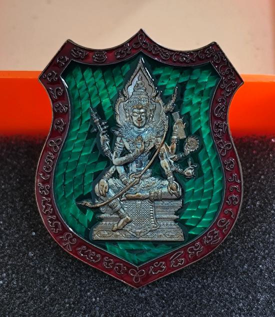เหรียญท้าวมหาพรหม รุ่นเจ้าสัวพันล้าน(บอย ท่าพระจันทร์) เนื้อชนวนลงยาพื้นเขียวขอบแดง เลขโค๊ต ๑๑๘๑ พร้อมกล่องเดิม |