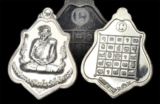 เหรียญหลวงพ่อพัฒน์ วัดห้วยด้วน จ.นครสวรรค์ รุ่น เจ้าทรัพย์บันดาลโชค ปี 2565 เนื้อ 2K องค์เงิน หมายเลข ๕๐ |