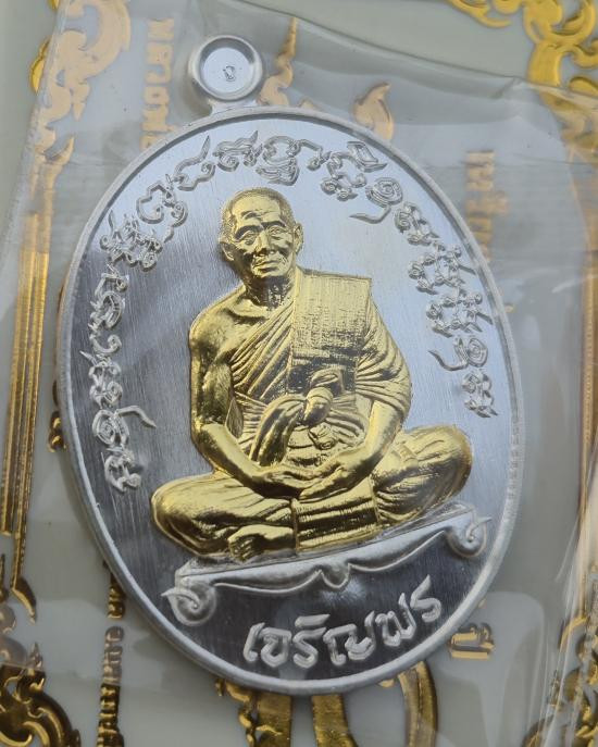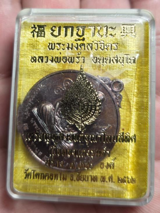 วัดใจ เนื้อเงินหน้ากากทองคำ อยู่ในรายการลุ้นโชค เหรียญปาฏิหารย์2 หลวงพ่อทอง วัดบ้านไร่( ลูกศิษย์หลวงพ่อคูณ) หลังกึ่งเรียบ เลข 5 (ถ่ายผ่านซีลเลยดูเหมือนเหรียญงอ) |