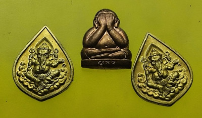 ปรกใบมะขาม รุ่นแรก หลวงปู่นนท์ วัดเหนือวน ราชบุรี 3องค์ |