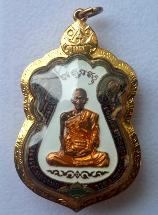 เหรียญหลวงพ่อรวย วัดตะโก รุ่นไตรมาส 59 รวยรวยรวย เนื้อทองแดงลงยา ปี 2559 จ.พระนครศรีอยุธยา เลี่ยมทองคำแท้ |