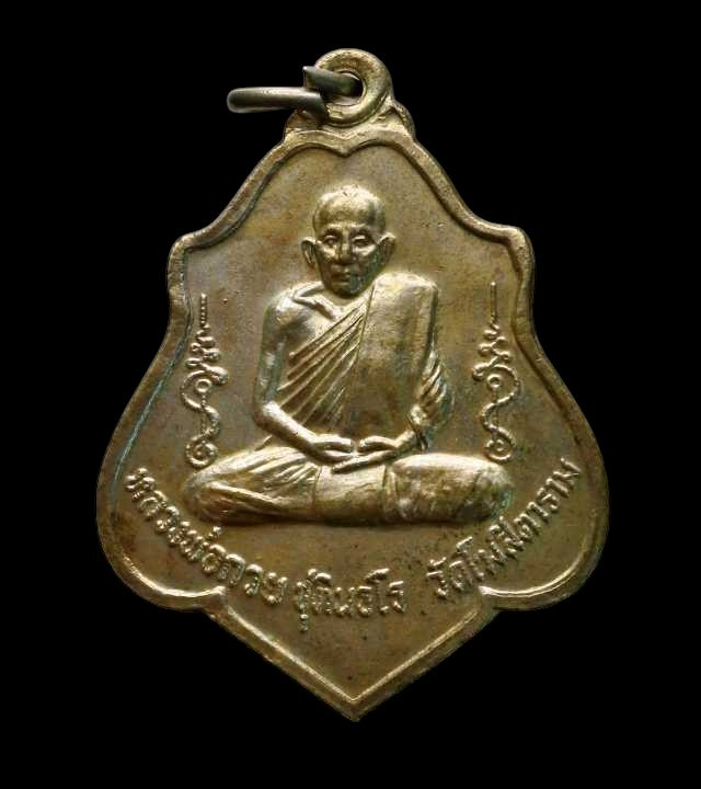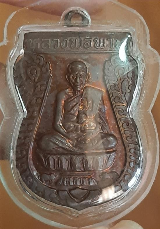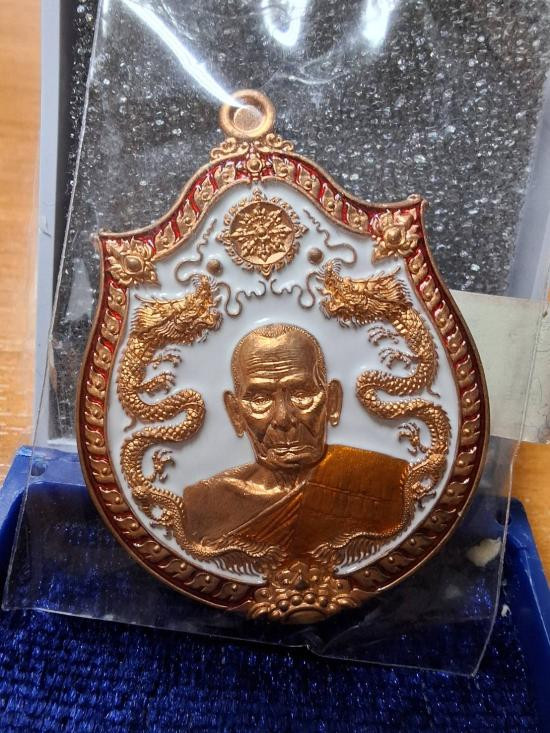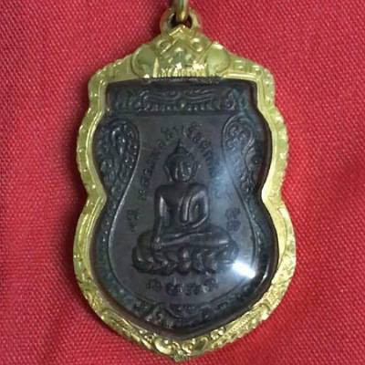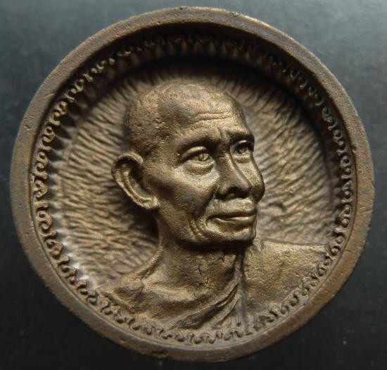 เหรียญหลวงพ่อสำเร็จศักดิ์สิทธิ์ รุ่น 2 จัดสร้างปี 2523 เนื้อทองแดงรมดำ เลี่ยมทองสวยๆ |