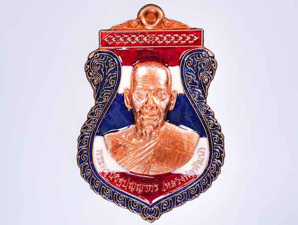 เหรียญรูปไข่ "เนื้อเงินลงยาสีแดง" ล.พ.จรัญ วัดอัมพวัน สิงห์บุรี ด้านหลังลงยาสีน้ำเงิน |