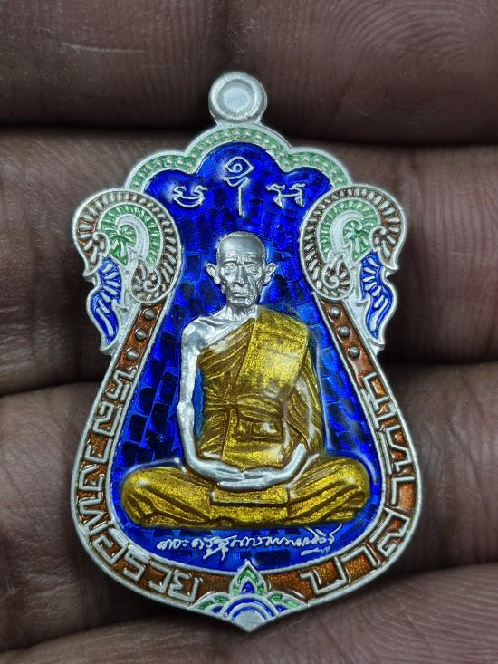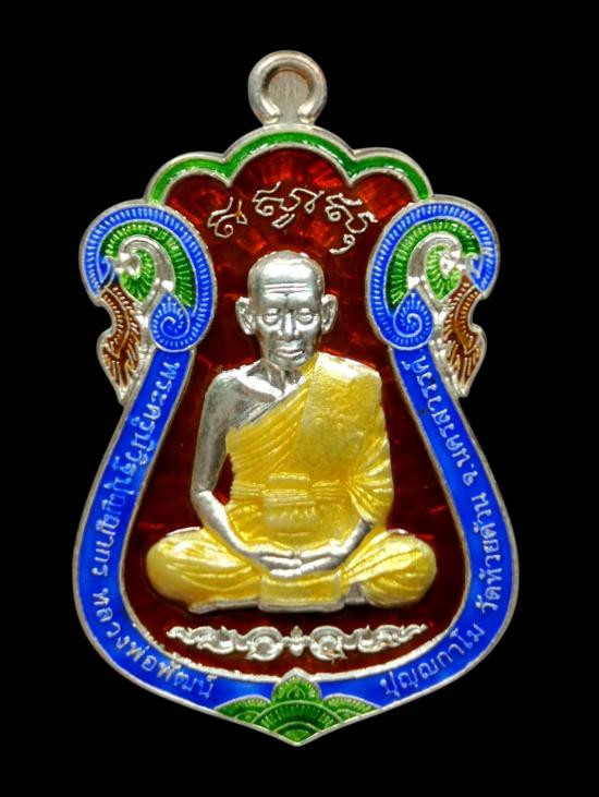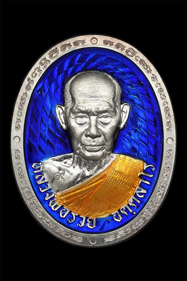 เหรียญเสมาบารมี หลวงพ่อรวย วัดตะโก เนื้อเงินลงยา ปี 2554 หมายเลข 987 |