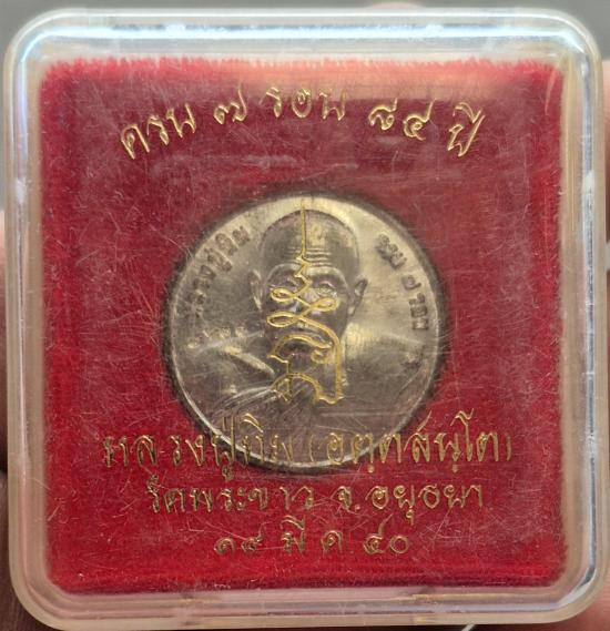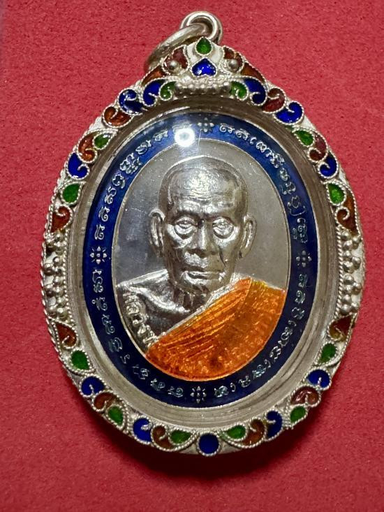 เหรียญเจริญพรรษา8รอบ หลวงปู่ชื่น วัดญาณแสน ปี45 เนื้อเงินลงยาหน้ากากทอง พร้อมกล่อง |