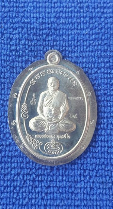 เหรียญเม็ดแตง หลวงพ่อรวย รวยชนะจน เนื้อเงินลงยา ปี62 หมายเลข679 |