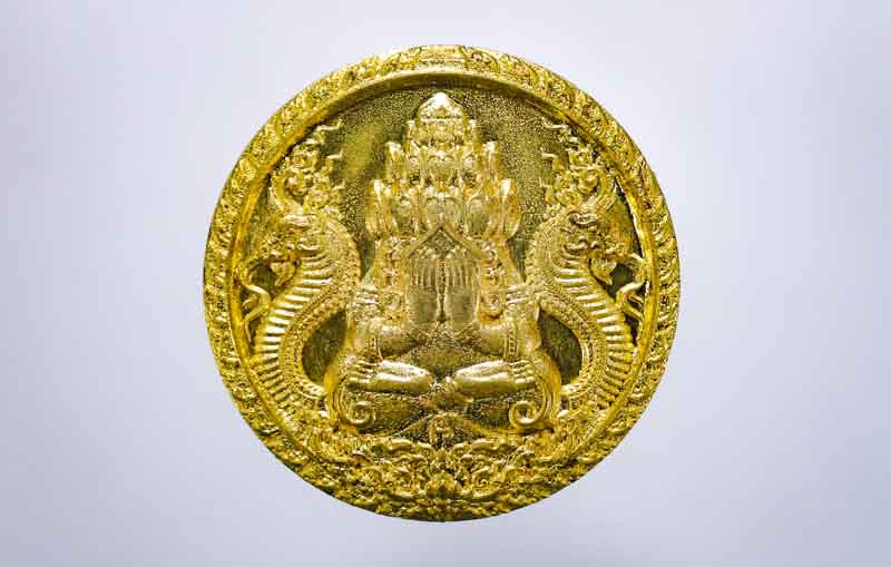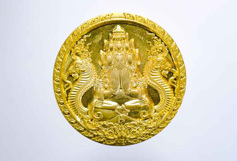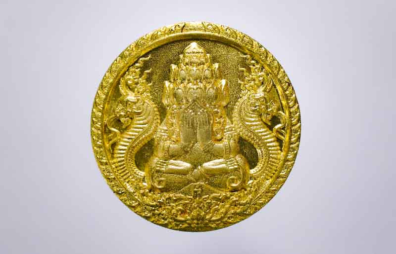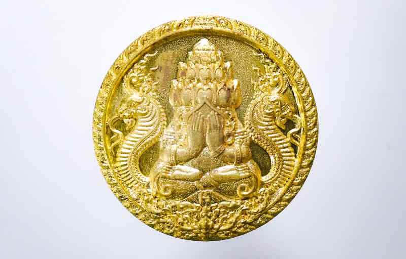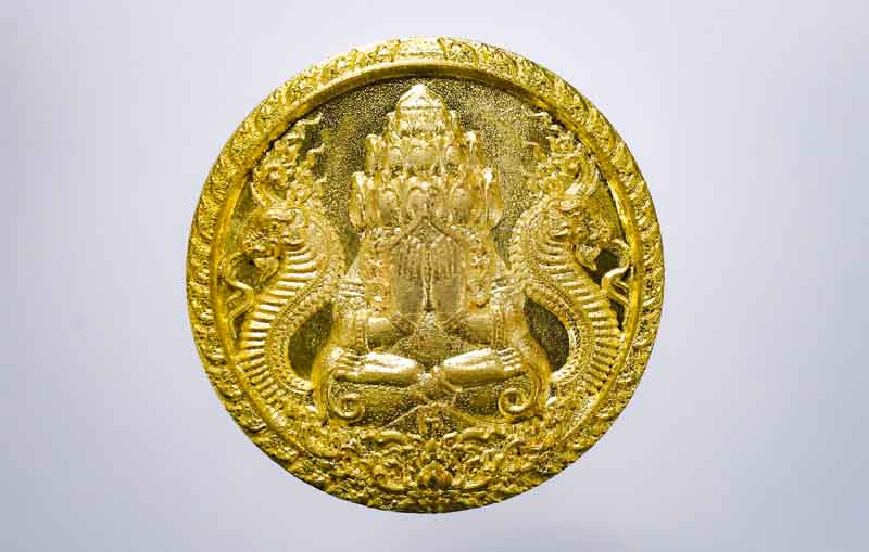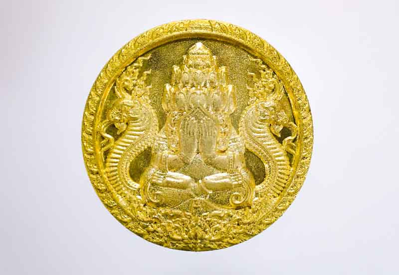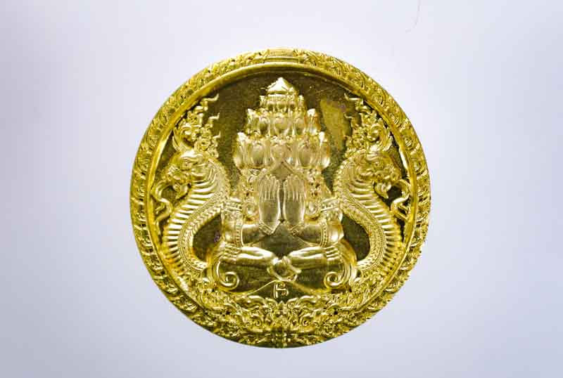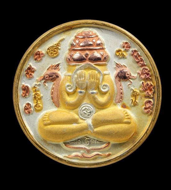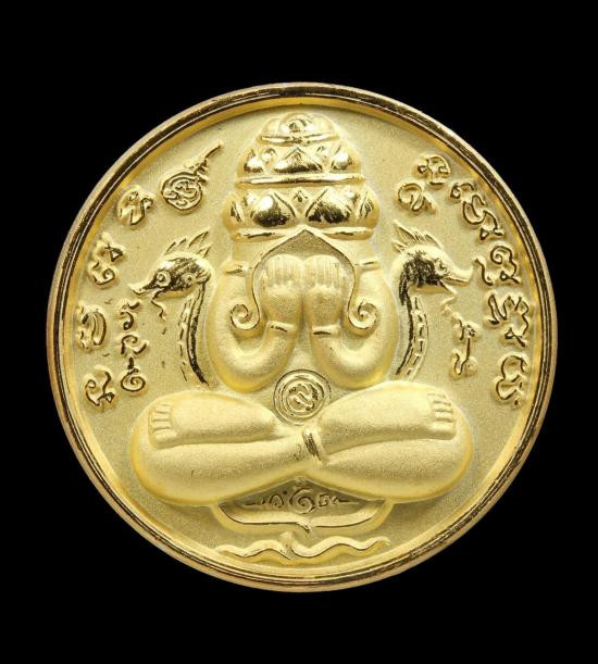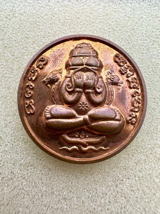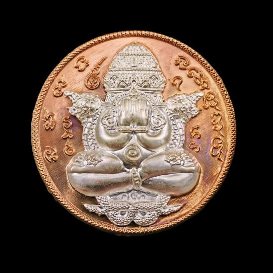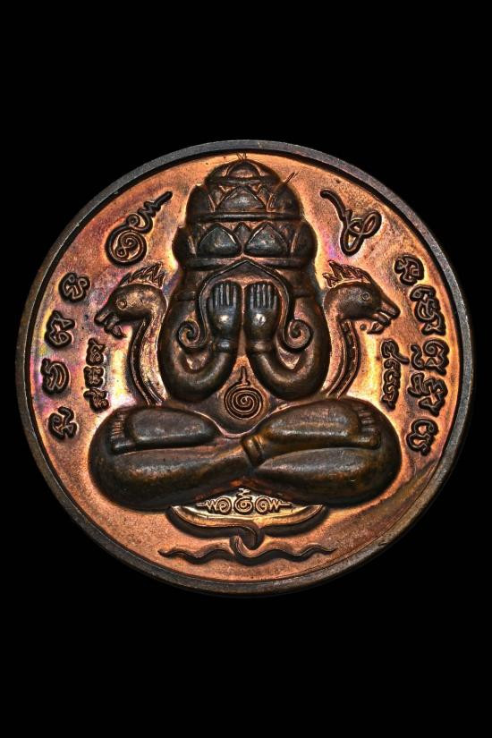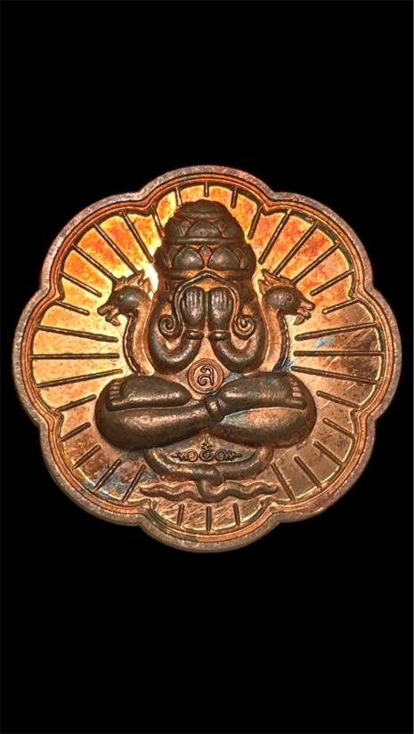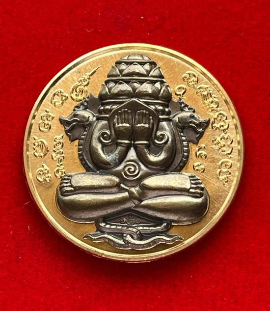 เหรียญปิดตาพระโพธิสัตว์พังพะกาฬ เนื้อทองแดงชุบทองไมครอน เลข590 ตอกสองโค๊ตแยกชุดพิเศษกรรมการ 9 รอบ 9 พิธี 108 ปี ท่านขุนพันธ์ จ.นครศรีธรรมราช ปี 2549 |