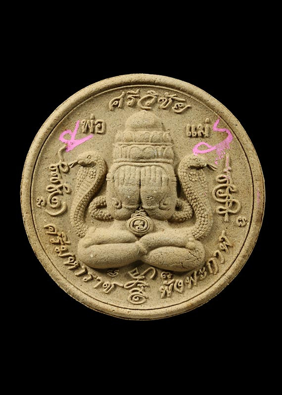 พระปิดตาพังพระกาฬ เนื้อผงลอยองค์ มรดกพ่อ วัดพุทไธศวรรย์ ปี 2547 เนื้อขาว |