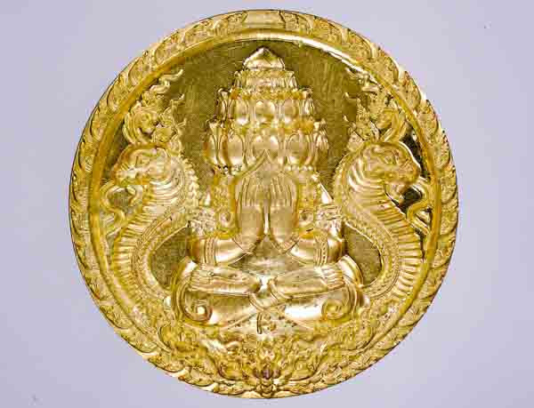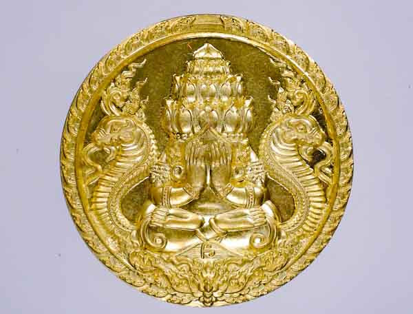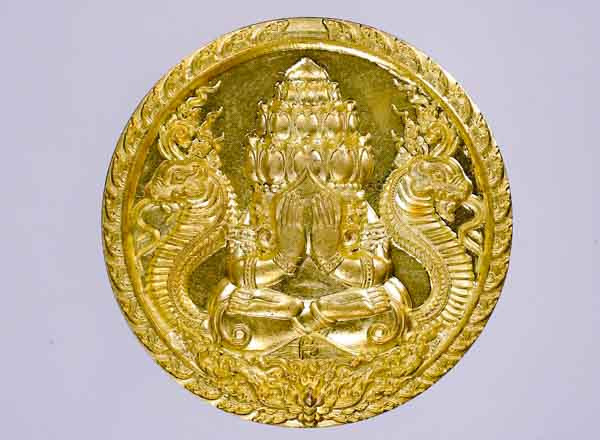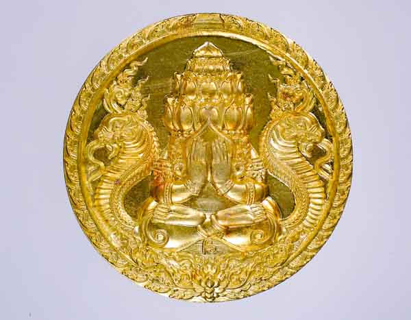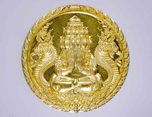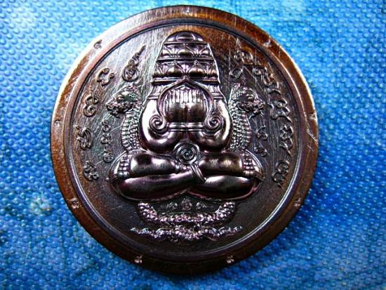 เหรียญปิดตาพังพระกาฬ รุ่นปกเกล้า ปี49 เนื้อทองฝาบาตร ตอกเลข 179 |