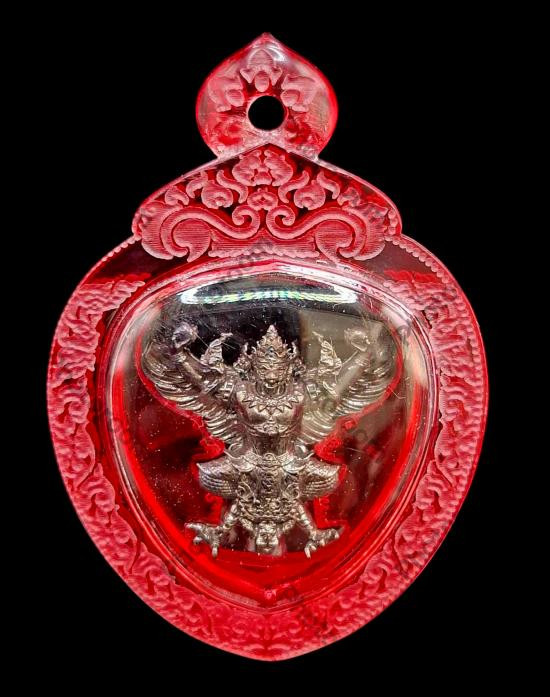 พญาครุฑ รุ่นแรก มหาปราบ ๔ ทิศ หลวงปู่พวง วัดเทพนรสิงห์ (วัดโคกตาสิงห์) จ.บุรีรัมย์ ปี 2565 เนื้ออัลปาก้าลงยาแดง หมายเลข 169 สวยๆ พร้อมกล่องเดิม