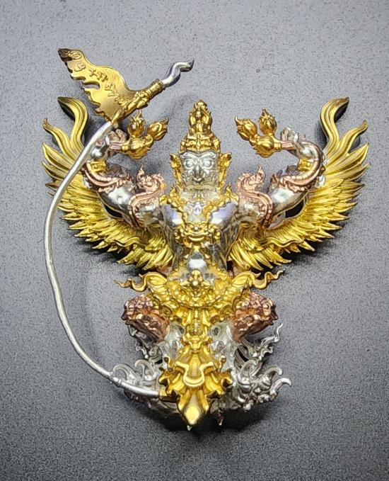 พญาครุฑ รุ่นแรก มหาปราบ ๔ ทิศ หลวงปู่พวง วัดเทพนรสิงห์ (วัดโคกตาสิงห์) จ.บุรีรัมย์ ปี 2565 เนื้อทองชนวน หมายเลข 927 สวยๆ พร้อมกล่องเดิม