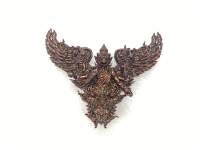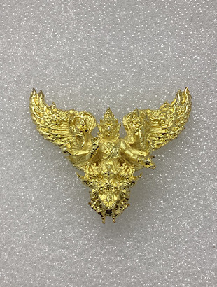 เคาะเดียวแดง 100 พญาครุฑมังรายศาสตร์ เศรษฐีอนันตทรัพย์ พระอาจารย์วิรุต วัดสันมะเหม้า จ.เชียงราย เนื้อสัมฤทธิ์ชุบทองขัดเงาบางส่วน พิมพ์เล็ก สูง 3 ซ.ม. กล่องเดิม