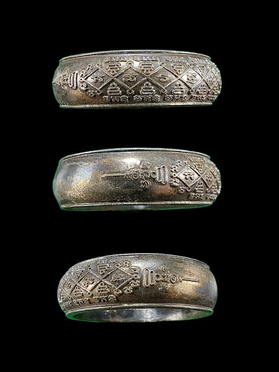 แหวนนพสิทธิ์ฤทธิชัยมงคล รุ่น 2 ปี 2557เนื้อสัตตโลหะหัวแร่กายสิทธิ์ จัดสร้างขึ้นโดยคุณหมออานุภาพ สหภิญโญชนม์ ขนาดตามรูป มีจาร