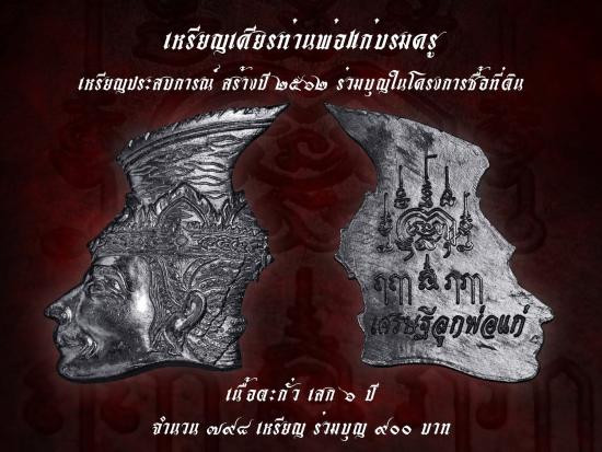 เหรียญเศียรพ่อแก่บรมครู ท่านพ่อพล บ้านทองเนียม เนื้อตะกั่ว ตอกโค็ต พ **เสกนาน 6ปี (สร้าง 798) พร้อมใบฟลอยด์ |