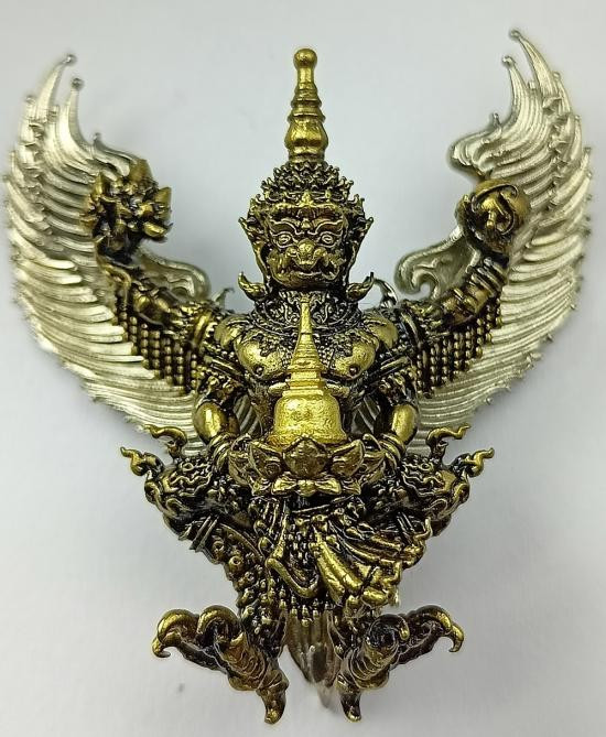 พญาครุฑเสาร์ ๕ เงินไหลมา วัดพระมหาธาตุ จ.นครศรีธรรมราช "พิมพ์ใหญ่ ขนาด 4.3ซม." เนื้อมหาชนวนรมดำ ปีกทองขาว พระธาตุทองลำอู่ เบอร์ 12 พร้อมกล่องครับ (S) |
