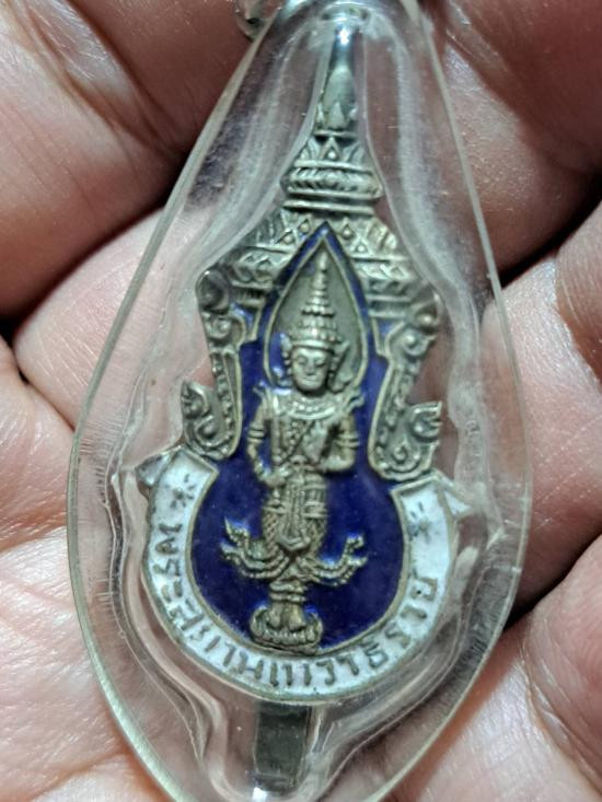 วัดใจแหนบเข็มกลัด พระสยามเทวาธิราช เนื้อเงินลงยา สีน้ำเงิน-ขาว ปี 2518 จ.ปราจีนบุรี เลียมกรอบสภาพสวยเดิมๆครับ |
