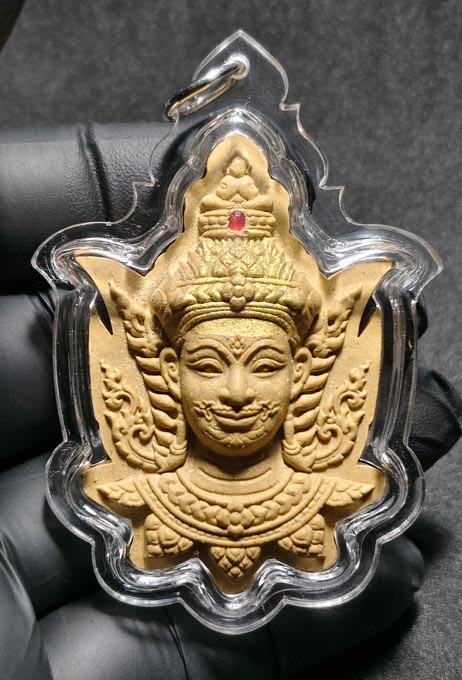 พระลักษณ์หน้าทอง องค์ครู หลวงปู่พริ้งวัดซับชมพู่ จ.เพชรบูรณ์ ด้านหลังฝังตระกรุด 2 ดอก สร้างจำนวน 336 องค์ |