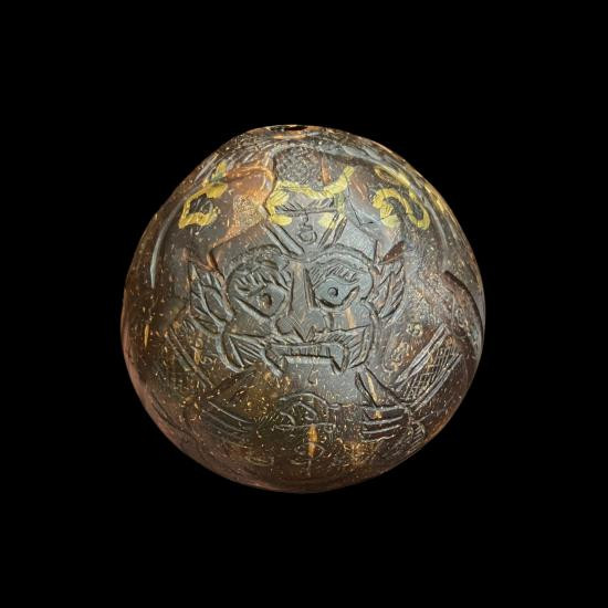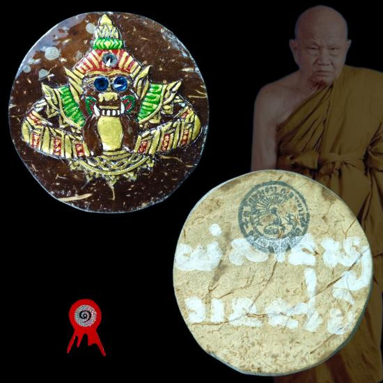 ราหูกะลาตาเดียวเเกะทั้งใบ ปี 47 หลวงปู่ทิม วัดพระขาว มีจารหมึกทอง และจารอักขระที่ผิวกะลา สวย งาน handmade หายากมาก น่าใช้ เข้มขลังมากครับ |