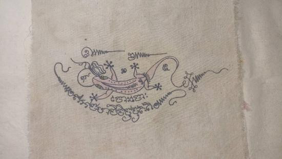 ผ้ายันต์ฝ่ามือ หลวงปู่ทิม วัดพระขาว สีกรัก ปี 38 ปีลึกมาก ได้รอยมือหลวงปู่ด้วย ผืนนี้พิเศษหลวงปู่ปิดทองให้ที่รอยฝ่ามือทั้ง 2 ข้าง |