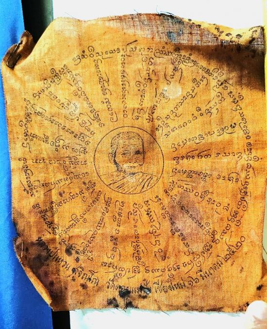 ผ้ายันต์ วัดราษฏร์อัสดาราม (สะพานสี่) มีรอยจารยันต์ด้วยมือ ครับ (พระบ้าน ครับ)