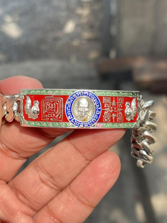 หลวงพ่อรวย วัดตะโก จ.อยุธยา เลสข้อมือ รุ่นรวยสมใจนึก ปี2558 เนื้อเงินลงยา ขนาด4บาท |
