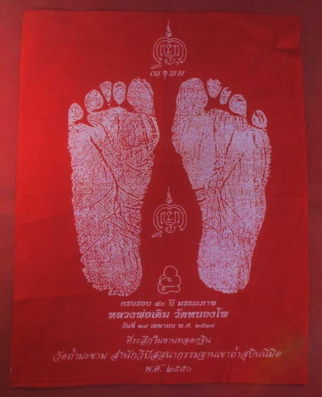 ผ้ายันต์ รอยท้าวหลวงพ่อเดิม วัดหนองโพ ออกวัดถ้ำมะขาม สำนักวิปัสสนากรรมฐานเขาถ้ำสุบินนิมิต ครับ (พระบ้าน ครับ) |